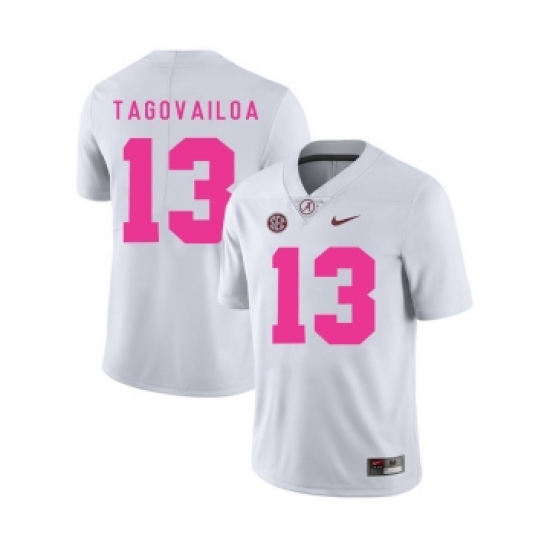 Alabama Crimson Tide 13 Tua Tagovailoa White 2018 Breast Cancer Awareness College Football Jersey