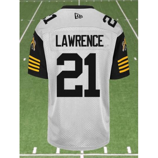 CFL Hamilton tiger cats #21 LAWRENCE Crested Away White Jersey