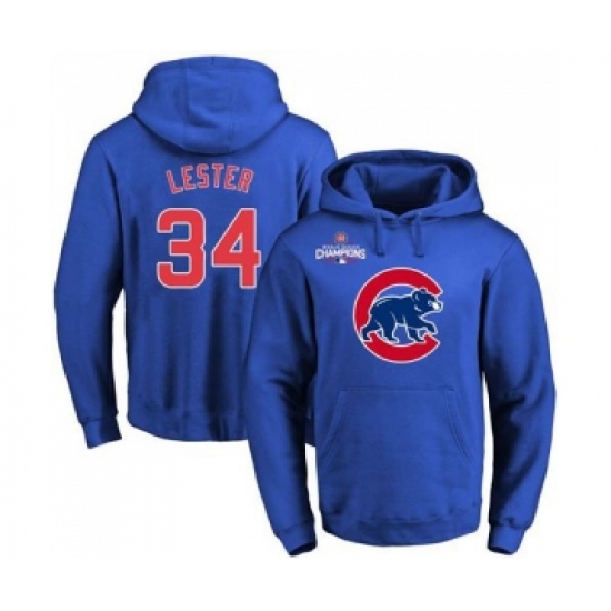 >Cubs #34 Jon Lester Blue 2016 World Series Champions Primary Logo Pullover MLB Hoodie