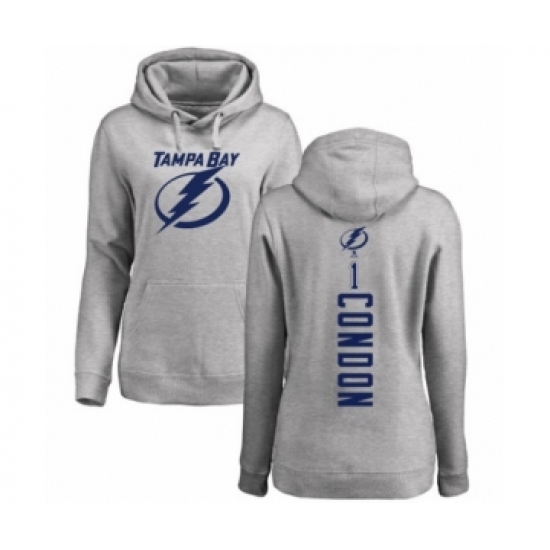 Hockey Women's Tampa Bay Lightning #1 Mike Condon Ash Backer Pullover Hoodie
