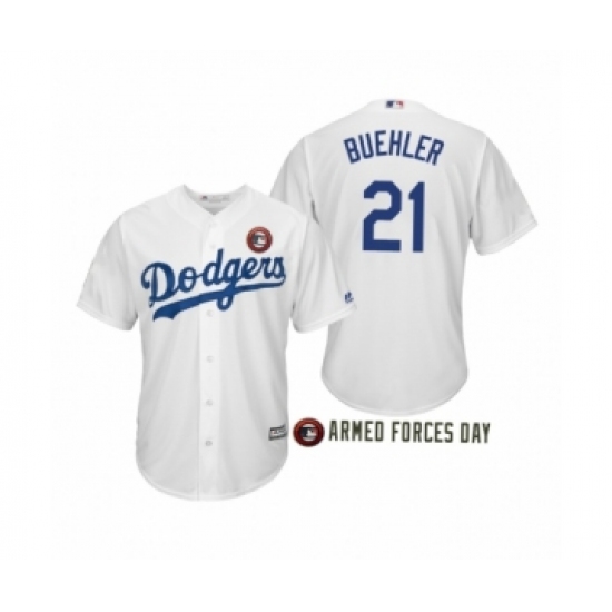 >Men's 2019 Armed Forces Day Walker Buehler #21 Los Angeles Dodgers White Jersey