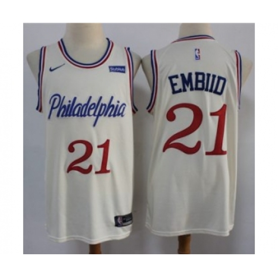 Men's 76ers #21 Joel Embiid Cream New City Edition Swingman Basketball Jersey