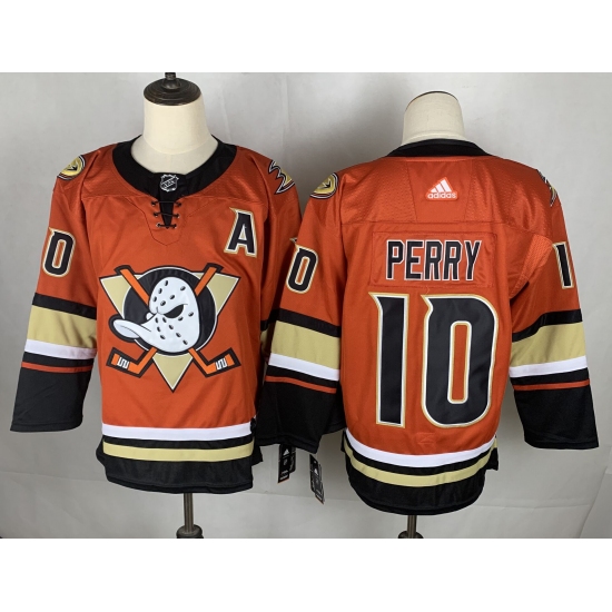 >Men's Adidas Anaheim Ducks #10 Corey Perry Orange Authentic Teal Third Jersey