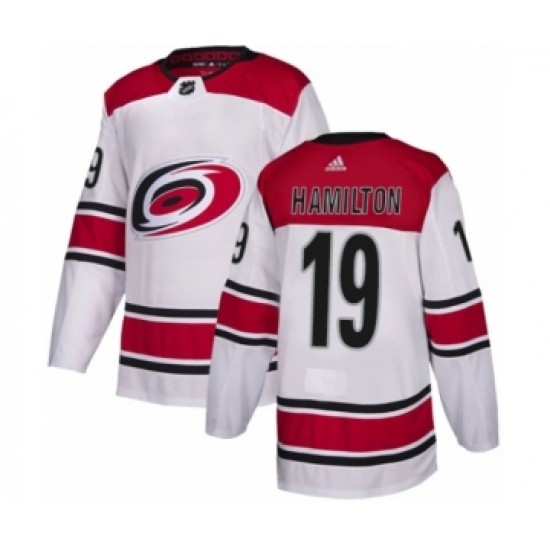 >Men's Adidas Carolina Hurricanes #19 Dougie Hamilton Authentic White Away NHL Jersey