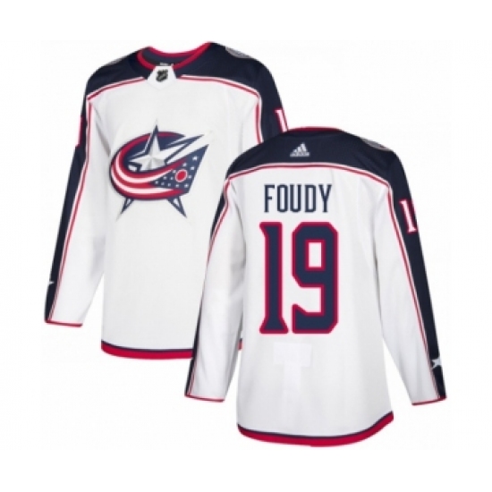 Men's Adidas Columbus Blue Jackets #19 Liam Foudy Authentic White Away NHL Jersey