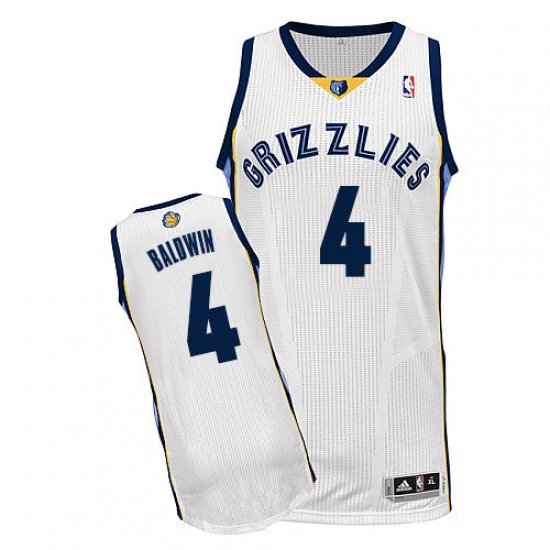 Home>NBA>Memphis Grizzlies>Wade Baldwin>Men's Adidas Memphis Grizzlies #4 Wade Baldwin Authentic White Home NBA Jersey