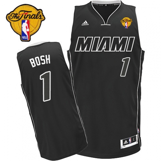 Men's Adidas Miami Heat #1 Chris Bosh Swingman Black/White Finals Patch NBA Jersey