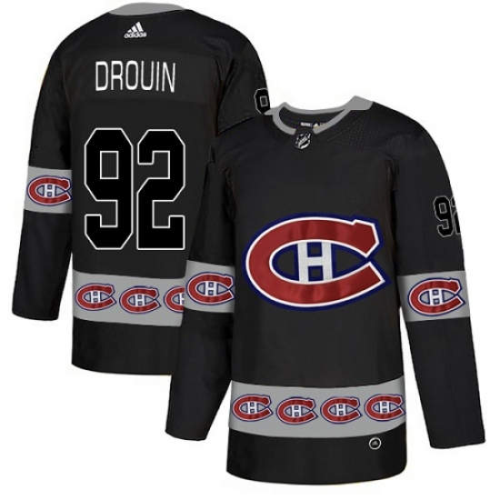Men's Adidas Montreal Canadiens #92 Jonathan Drouin Authentic Black Team Logo Fashion NHL Jersey