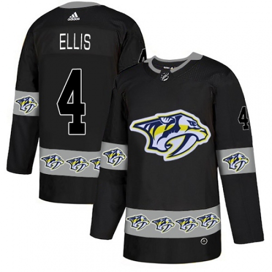 Men's Adidas Nashville Predators #4 Ryan Ellis Authentic Black Team Logo Fashion NHL Jersey