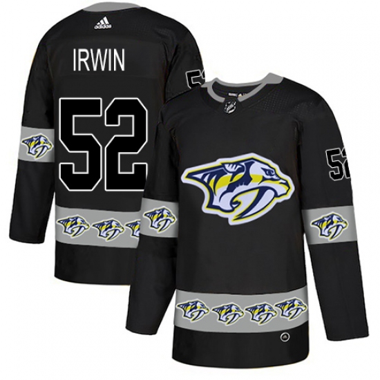 >Men's Adidas Nashville Predators #52 Matt Irwin Authentic Black Team Logo Fashion NHL Jersey