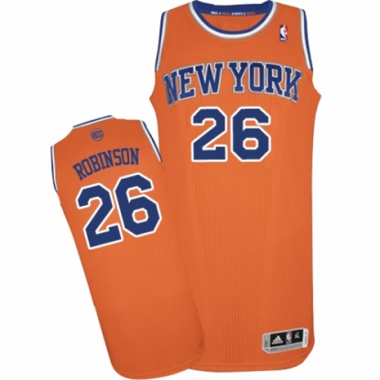 >Men's Adidas New York Knicks #26 Mitchell Robinson Authentic Orange Alternate NBA Jersey