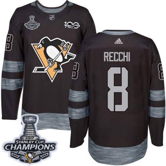 Home>NHL>Pittsburgh Penguins>Mark Recchi>Men's Adidas Pittsburgh Penguins #8 Mark Recchi Authentic Black 1917-2017 100th Anniversary 2017 Stanley Cup Champions NHL Jersey