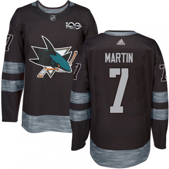 Men's Adidas San Jose Sharks #7 Paul Martin Premier Black 1917-2017 100th Anniversary NHL Jersey