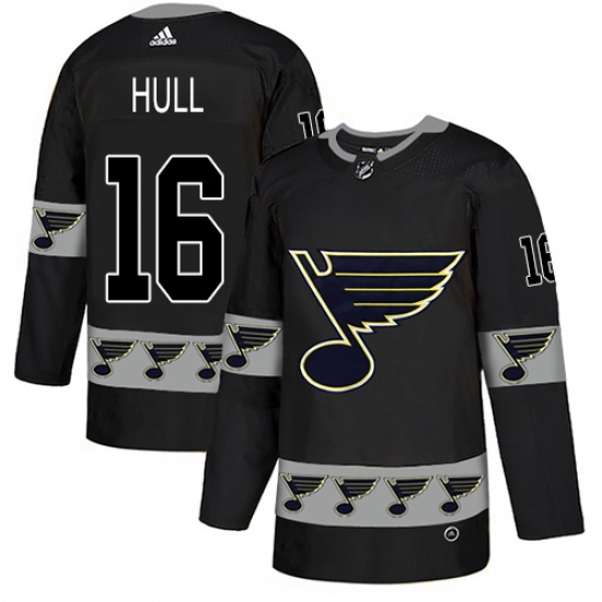 Men's Adidas St. Louis Blues #16 Brett Hull Authentic Black Team Logo Fashion NHL Jersey