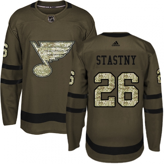Home>NHL>St. Louis Blues>Paul Stastny>Men's Adidas St. Louis Blues #26 Paul Stastny Premier Green Salute to Service NHL Jersey