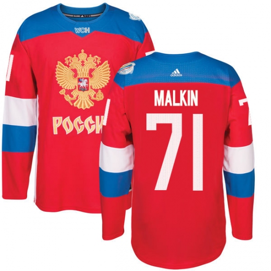 Home>NHL>Team Russia>Evgeni Malkin>Men's Adidas Team Russia #71 Evgeni Malkin Authentic Red Away 2016 World Cup of Hockey Jersey