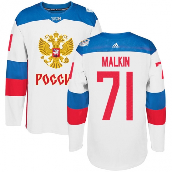 Home>NHL>Team Russia>Evgeni Malkin>Men's Adidas Team Russia #71 Evgeni Malkin Authentic White Home 2016 World Cup of Hockey Jersey