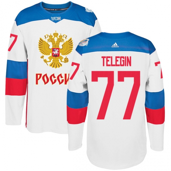 Men's Adidas Team Russia #77 Ivan Telegin Premier White Home 2016 World Cup of Hockey Jersey
