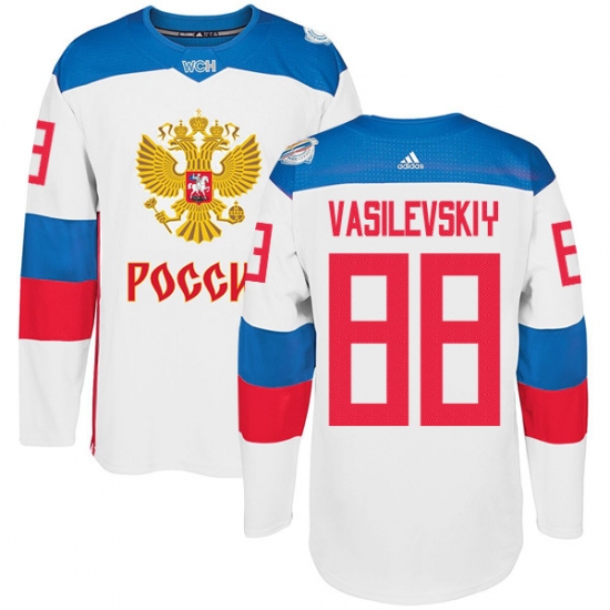 Home>NHL>Team Russia>Andrei Vasilevskiy>Men's Adidas Team Russia #88 Andrei Vasilevskiy Authentic White Home 2016 World Cup of Hockey Jersey