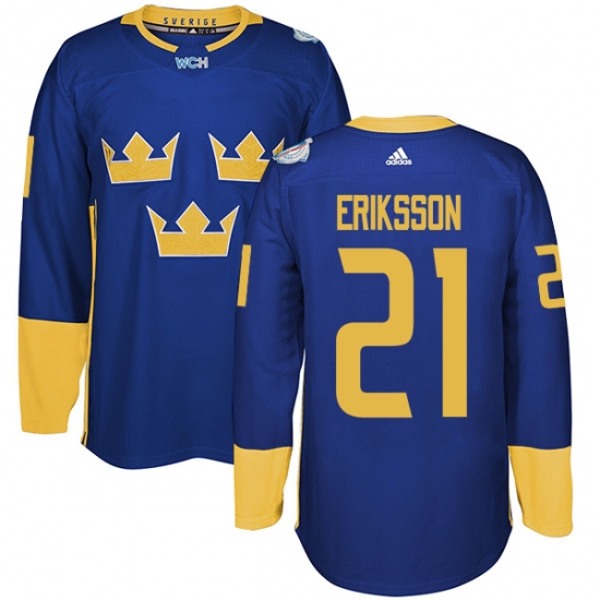 Men's Adidas Team Sweden #21 Loui Eriksson Premier Royal Blue Away 2016 World Cup of Hockey Jersey
