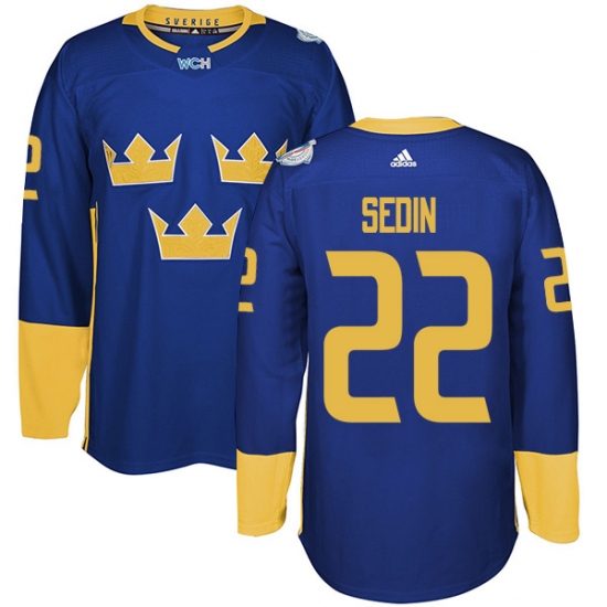 Home>NHL>Team Sweden>Daniel Sedin>Men's Adidas Team Sweden #22 Daniel Sedin Authentic Royal Blue Away 2016 World Cup of Hockey Jersey