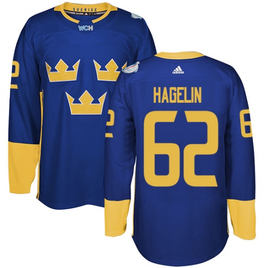 Home>NHL>Team Sweden>Carl Hagelin>Men's Adidas Team Sweden #62 Carl Hagelin Premier Royal Blue Away 2016 World Cup of Hockey Jersey