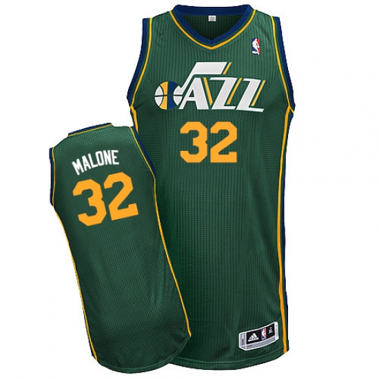 Home>NBA>Utah Jazz>Karl Malone>Men's Adidas Utah Jazz #32 Karl Malone Authentic Green Alternate NBA Jersey