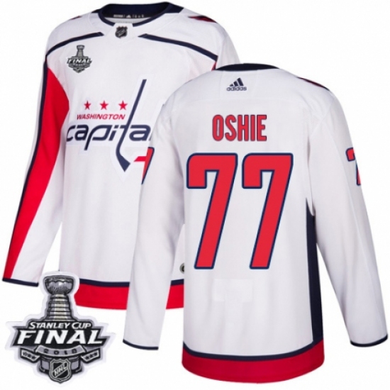 Men's Adidas Washington Capitals #77 T.J. Oshie Authentic White Away 2018 Stanley Cup Final NHL Jersey