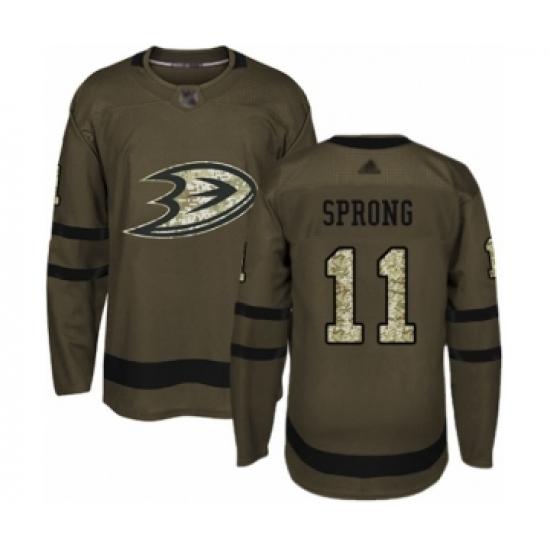 >Men's Anaheim Ducks #11 Daniel Sprong Authentic Green Salute to Service Hockey Jersey