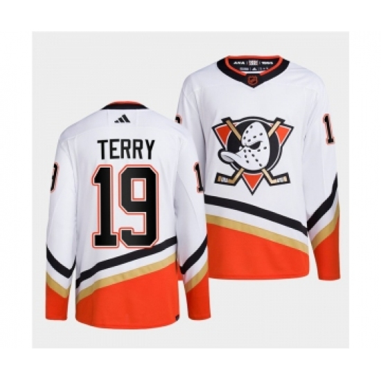 Men's Anaheim Ducks #19 Troy Terry White 2022-23 Reverse Retro Stitched Jersey