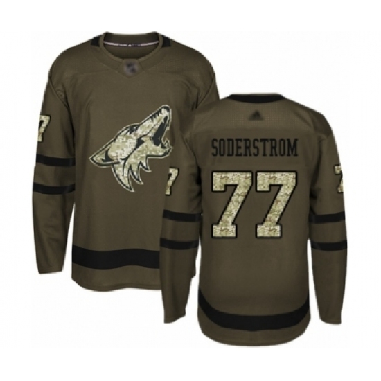 >Men's Arizona Coyotes #77 Victor Soderstrom Authentic Green Salute to Service Hockey Jersey