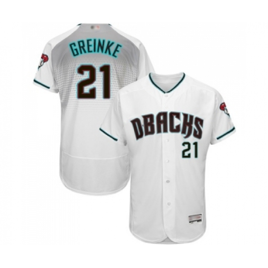 Men's Arizona Diamondbacks #21 Zack Greinke White Teal Alternate Authentic Collection Flex Base Baseball Jersey