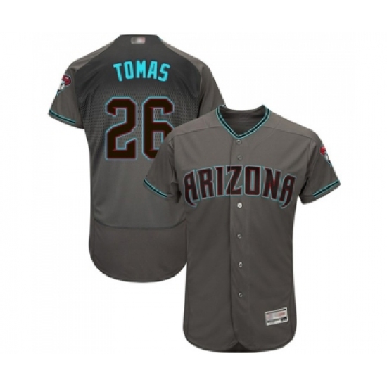 >Men's Arizona Diamondbacks #26 Yasmany Tomas Gray Teal Alternate Authentic Collection Flex Base Baseball Jersey