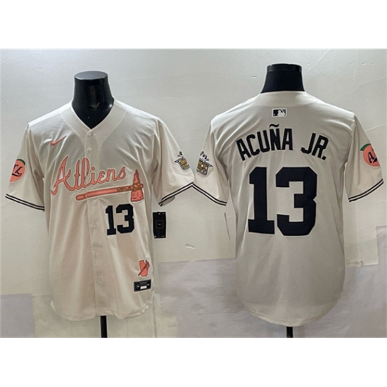 Men's Atlanta Braves #13 Ronald Acuna Jr. Cream 2024 Atliens & Peach With Outkast Vapor Limited Stitched Baseball Jersey