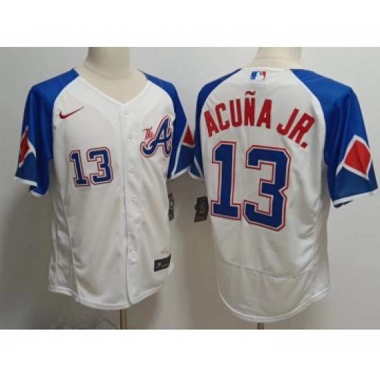 Men's Atlanta Braves #13 Ronald Acuna Jr White 2023 City Connect Flex Base Stitched Jersey