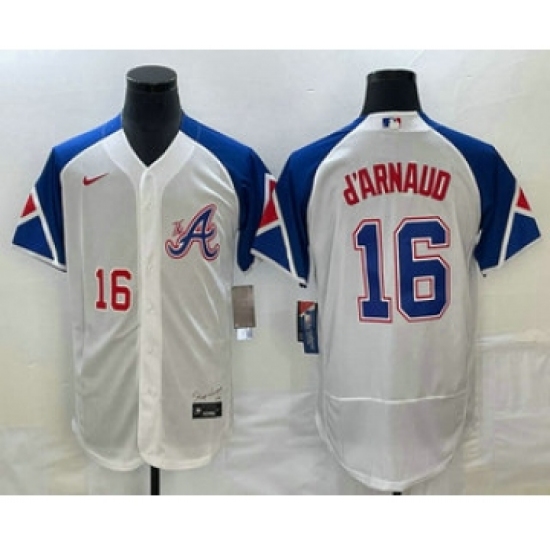 Men's Atlanta Braves #16 Travis dArnaud Number White 2023 City Connect Flex Base Stitched Jersey