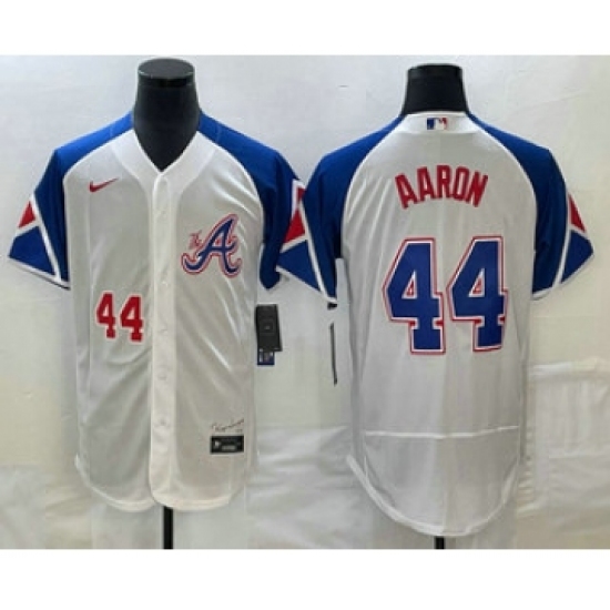 >Men's Atlanta Braves #44 Hank Aaron Number White 2023 City Connect Flex Base Stitched Jersey