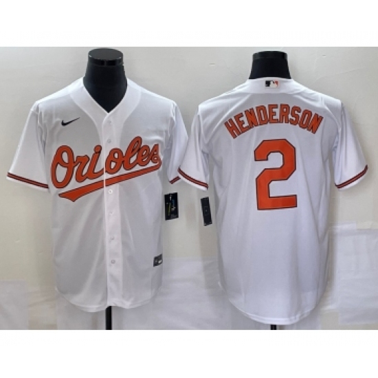 >Men's Baltimore Orioles #2 Gunnar Henderson White Cool Base Stitched Jersey