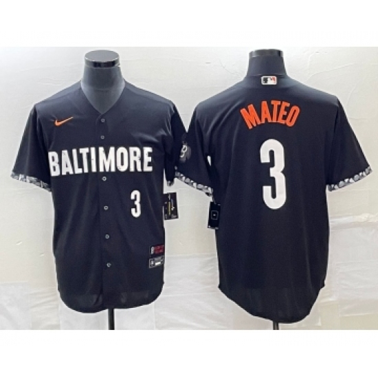 Men's Baltimore Orioles #3 Jorge Mateo Number Black 2023 City Connect Cool Base Stitched Jersey 1