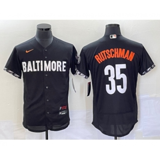 Men's Baltimore Orioles #35 Adley Rutschman Black 2023 City Connect Flex Base Stitched Jersey 1