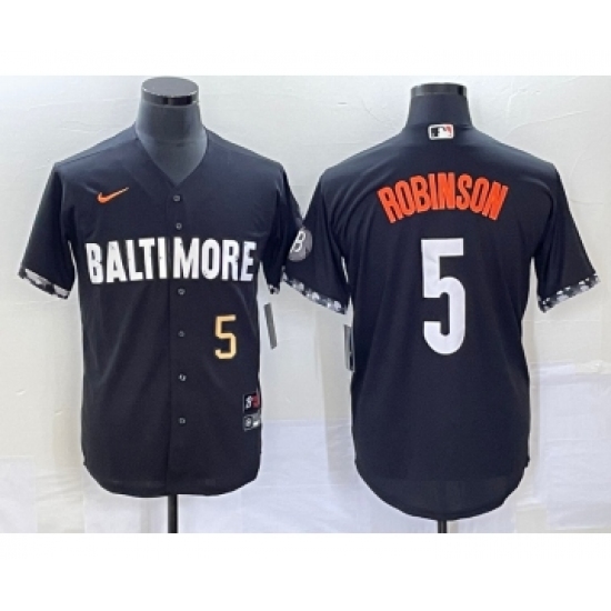 Men's Baltimore Orioles #5 Brooks Robinson Number Black 2023 City Connect Cool Base Stitched Jersey 2