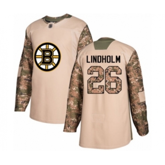 >Men's Boston Bruins #26 Par Lindholm Authentic Camo Veterans Day Practice Hockey Jersey