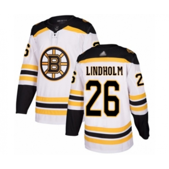 >Men's Boston Bruins #26 Par Lindholm Authentic White Away Hockey Jersey