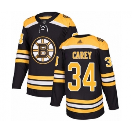 >Men's Boston Bruins #34 Paul Carey Authentic Black Home Hockey Jersey