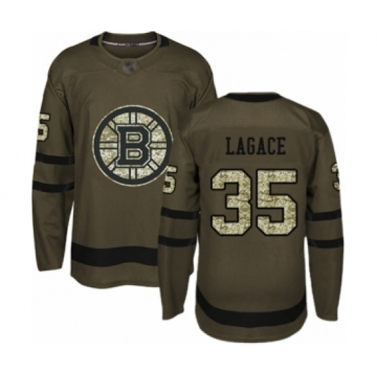 >Men's Boston Bruins #35 Maxime Lagace Authentic Green Salute to Service Hockey Jersey