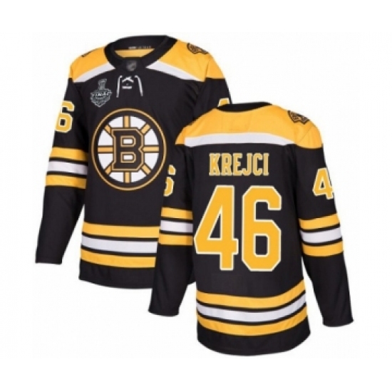 Men's Boston Bruins #46 David Krejci Authentic Black Home 2019 Stanley Cup Final Bound Hockey Jersey