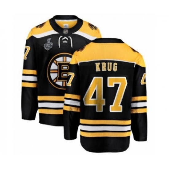 Men's Boston Bruins #47 Torey Krug Authentic Black Home Fanatics Branded Breakaway 2019 Stanley Cup Final Bound Hockey Jersey