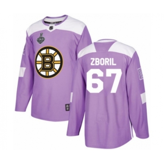 >Men's Boston Bruins #67 Jakub Zboril Authentic Purple Fights Cancer Practice 2019 Stanley Cup Final Bound Hockey Jersey