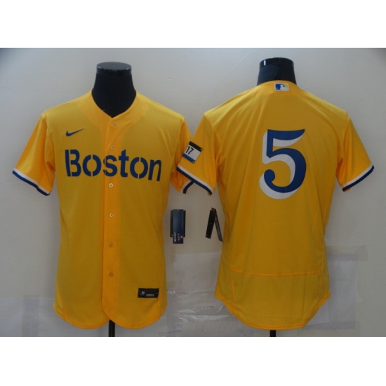 Men's Boston Red Sox #5 Enrique Hernandez Nike Gold-Light Blue 2021 City Connect Replica Player Jersey