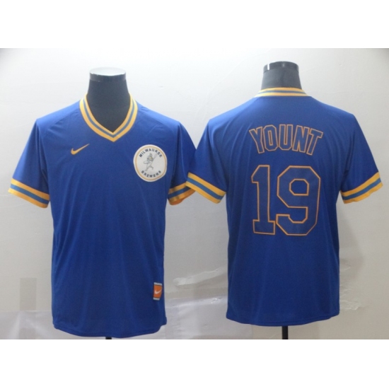 Men's Brewers #19 Robin Yount Royal Cooperstown Collection Stitched Baseball Jersey